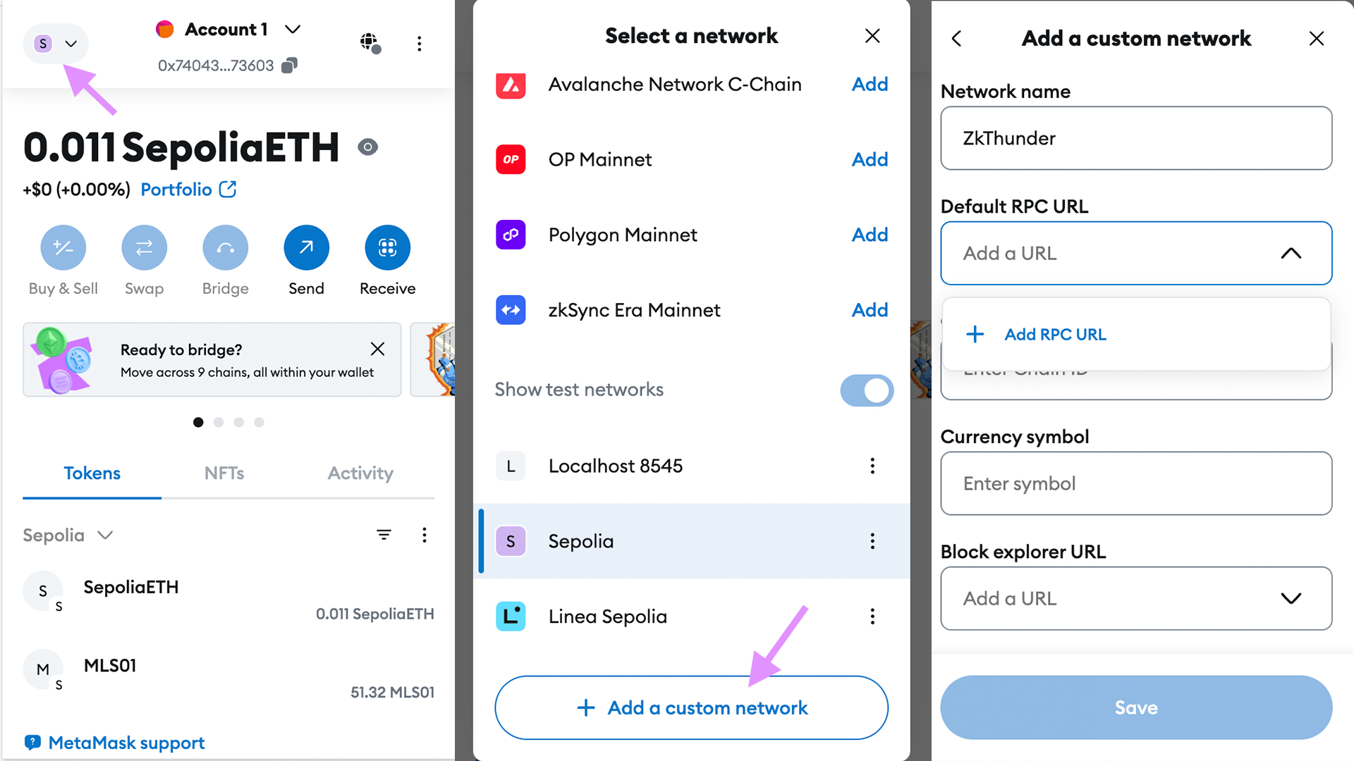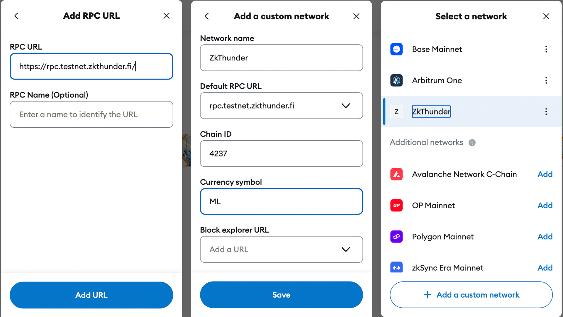Getting started with ZK Thunder on MetaMask is simple. Follow these steps to add it as a custom network: